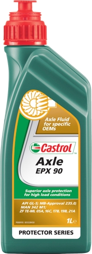 Castrol Axle EPX 90 Especificações: API GL-5; MB-Approval 235.0; MAN 342 typ M1; ZF TE-ML 05A, 16C, 17B, 19B, 21A